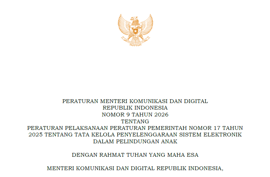 PERATURAN MENTERI KOMUNIKASI DAN DIGITAL REPUBLIK INDONESIA NOMOR 9 TAHUN 2026 TENTANG PERATURAN PELAKSANAAN PERATURAN PEMERINTAH..